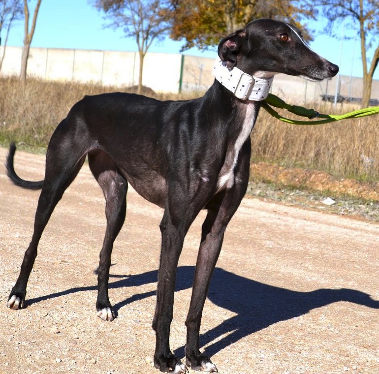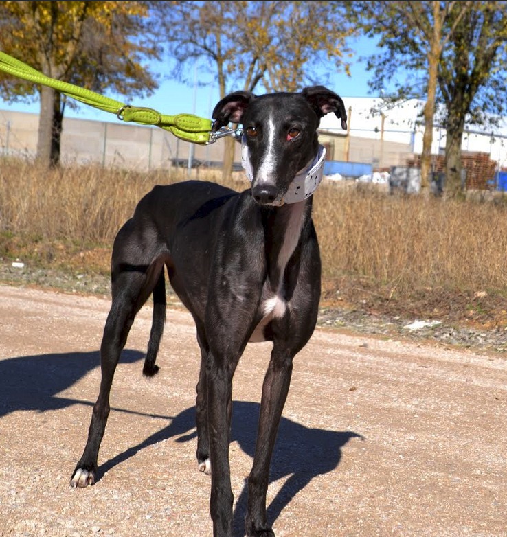 Fayna a été abandonnée au refuge par son galguero. Elle est arrivée avec plusieurs blessures, dont une au cou, qui laisse penser que la puce a été retirée sans précaution.