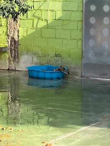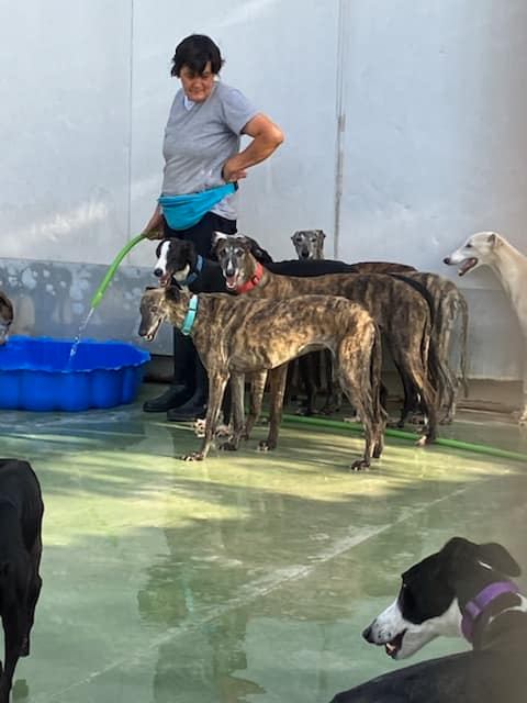 Et là vous ne savez pas quoi dire, l’émotion qui monte face à ses loulous qui viennent à la grille vous voir pour quémander une main tendue, une grattouille, un câlin, très peu d’aboiement voire pas du tout. Irène est au milieu d’eux qui remplit les seaux d’eau et les piscines tout en leur parlant avec toujours le sourire, c’est leur copine de tous les jours comme toutes les bénévoles qui viennent donner un coup de main pour aider.