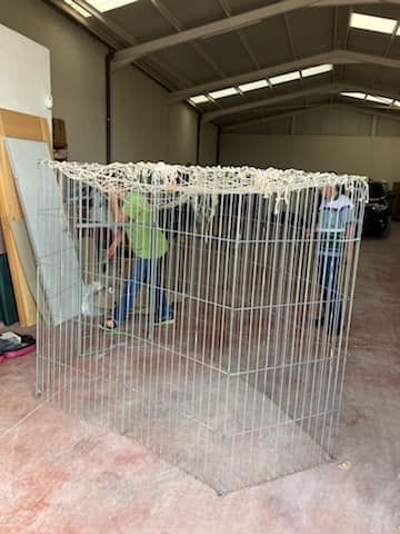 Loli et Juan nous rejoignent, puis direction l’entrepôt pour vider la remorque, puis Loli nous fait la démonstration de la cage trappe.