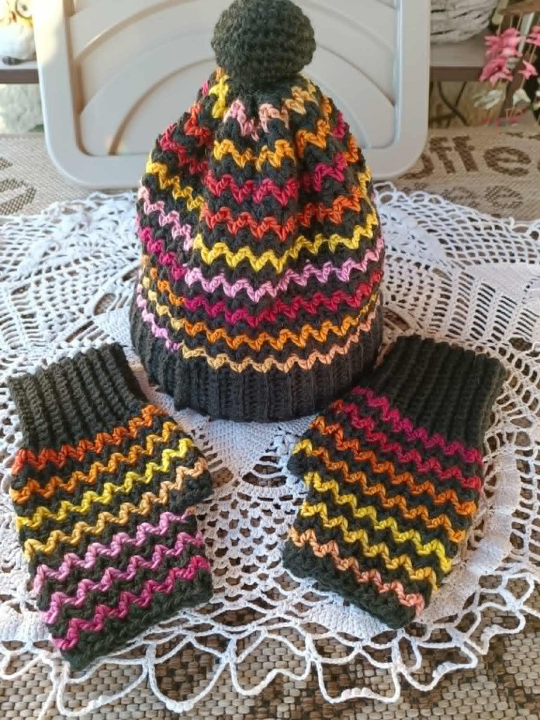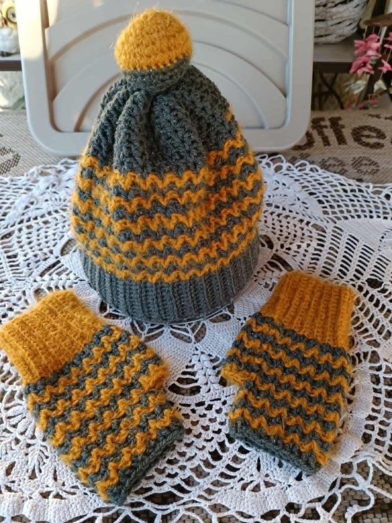 L’ensemble bonnet/mitaines vendu 28€ plus frais de port