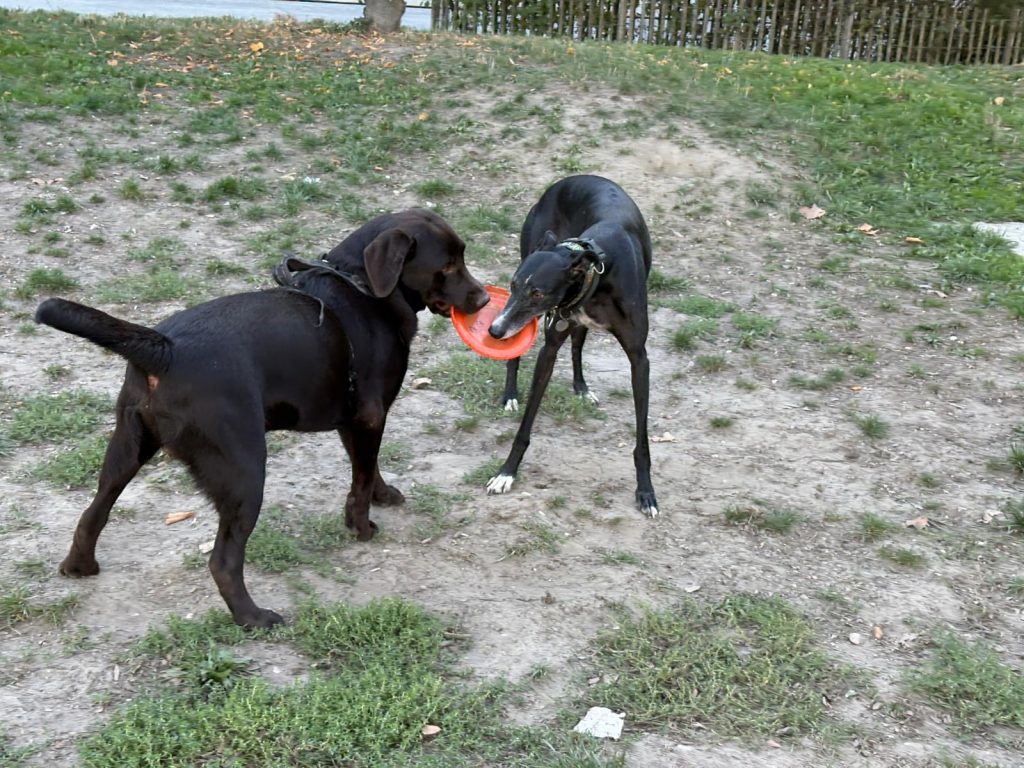 La belle Chata est à l’aise après un mois d’adoption. Elle est très proche de ses parents et profitent maintenant de balades avec de nouveaux copains.